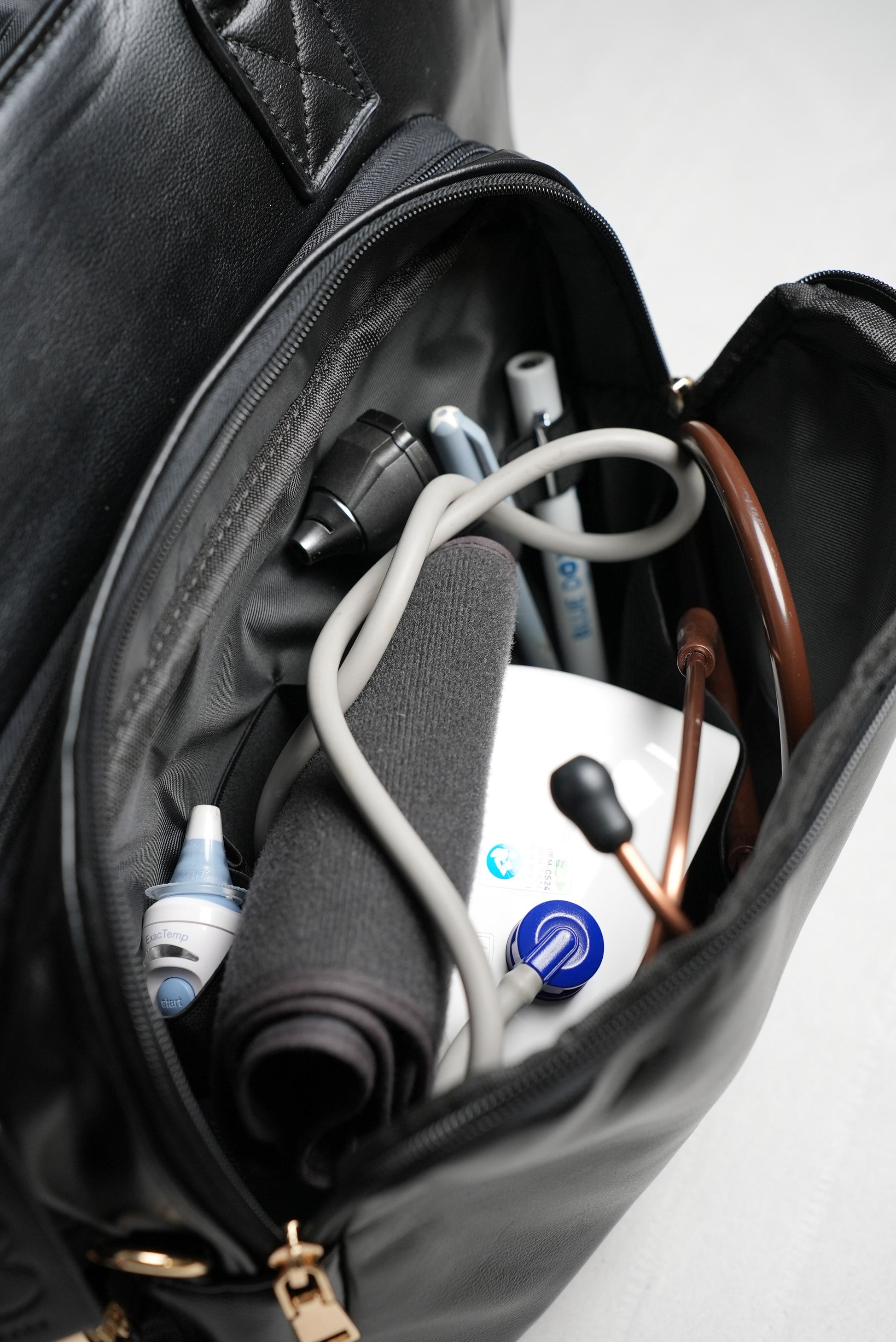 What sets this bag apart is its detachable front pocket—a versatile feature that offers quick access to frequently used items like stethoscopes, notepads, or sanitisers. Simply detach it to carry your essentials separately or keep it attached for a streamlined look.